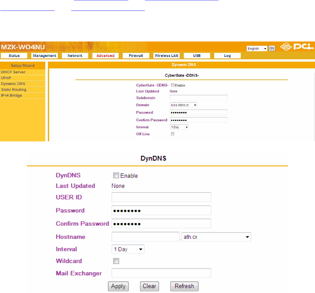 CyberGate –DDNS-:You may choose a DDNS provider and then click to enable DDNS