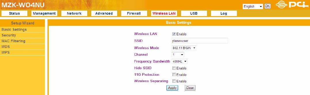 default SSID is “planexuser”. Notice: When entering your SSID, please don't use