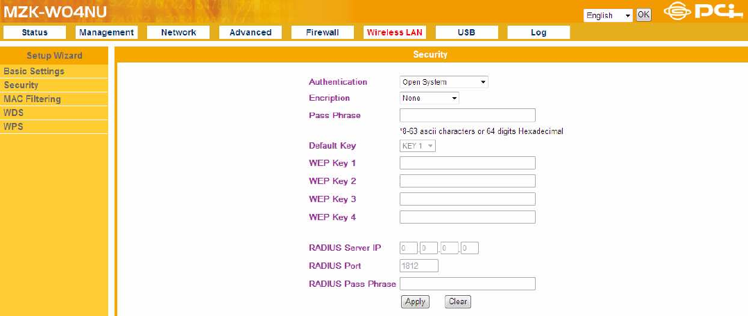 WEP Key 1~4:The WEP keys are used to encrypt data transmitted in the wireless