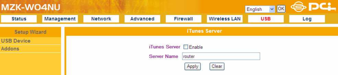 2. Enable the “iTunes Server” function on the configuration page of the router. And give your