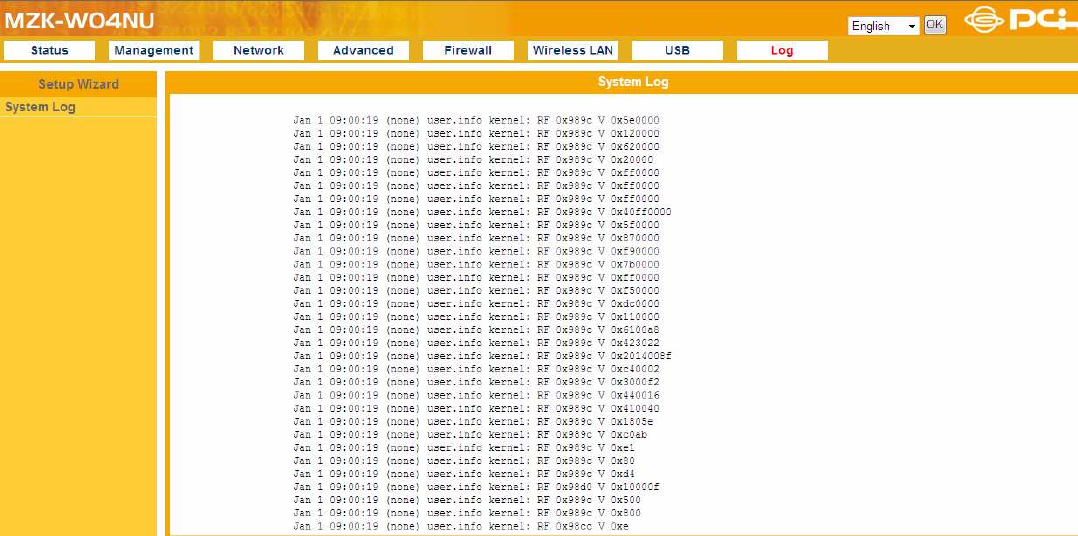 System Log records every events happened on the MZK-W04NU Wireless Router. These data are