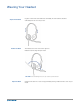 Wearing Your Headset Adjust the Headband Position the Boom Lengthen or shorten the band until it fits comfortably. The foam cushions should sit comfortably over the center of your ears. This headset can be worn on the left or right side. Rotate the boom to align with your mouth. CAUTION To avoid breaking the boom, only rotate it up and over 180°. Adjust the Boom Gently bend the boom in or out so it is approximately two finger widths from the corner of your mouth.