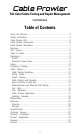 Cable Prowler Full-Color Cable Testing and Report Management User Manual Table of Contents About this Manual.......................................................................................3 Safety Information.......................................................................................4 Cable Prowler Kits.......................................................................................5 Cable Prowler Accessories..........................................................................