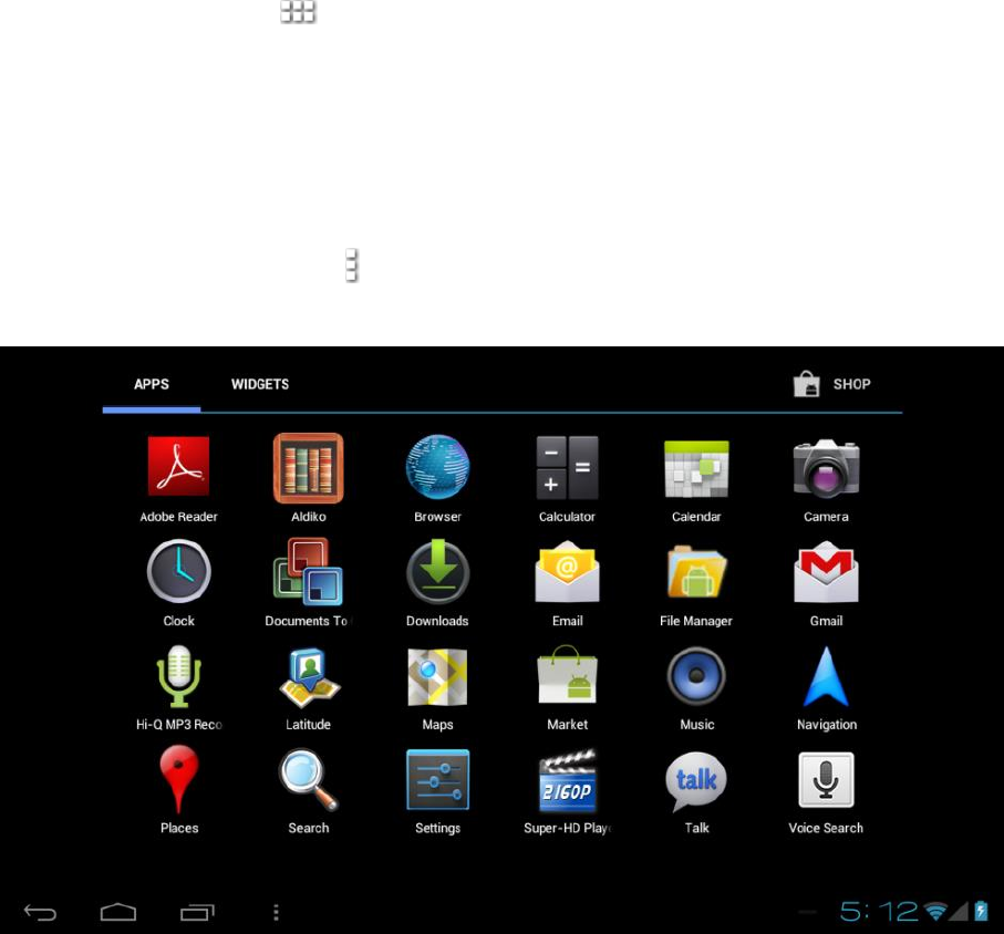 Druk op de ‘Apps drawer’ icoon in de rechter bovenhoek van het scherm op de ‘Apps