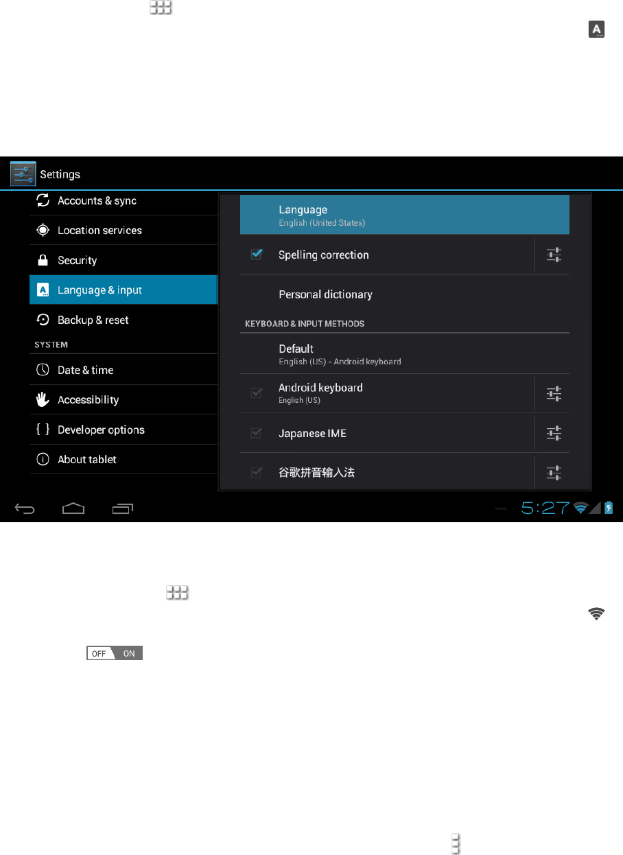 ‘Language & input’ geeft de taal instellingen weer in het rechter paneel. Selecteer het