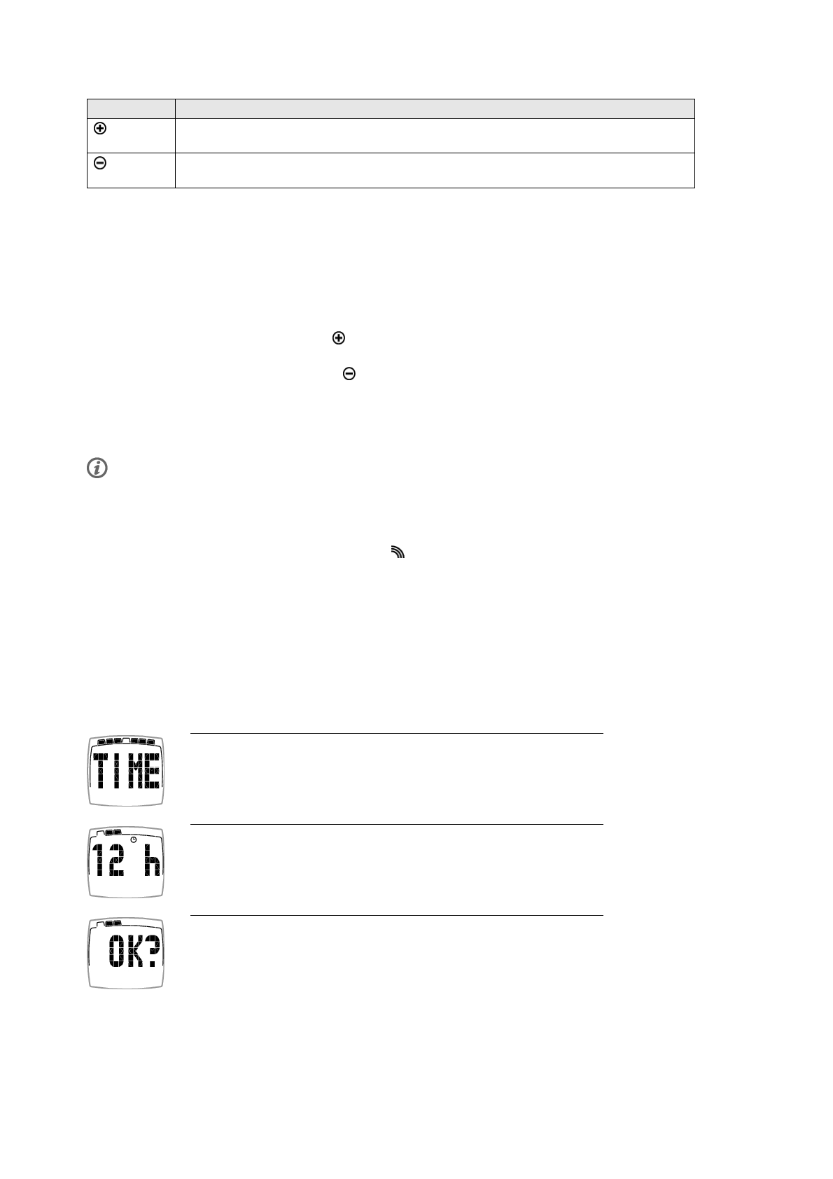 • Rückkehr zur Uhrzeitanzeige aus jedem Modus außer dem Trainingsmodus. Halten Sie die Taste