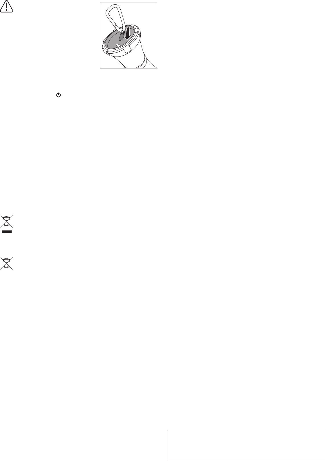 • Das Produkt kann mit dem Karabinerhaken aufgehängt
