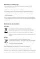 Entretien et nettoyage • Éteignez le produit avant le nettoyage et laissez les LED refroidir suffisamment. • Avant tout nettoyage, enlevez les piles. • N‘utilisez en aucun cas des produits de nettoyage agressifs, à base d‘alcool ou toute autre solution chimique, car ceuxci pourraient endommager les matériaux et nuire au bon fonctionnement. • Pour nettoyer, utilisez un chiffon propre, sec et non pelucheux. Évitez d’appuyer trop fort sur la cire, car des rayures pourraient apparaître.