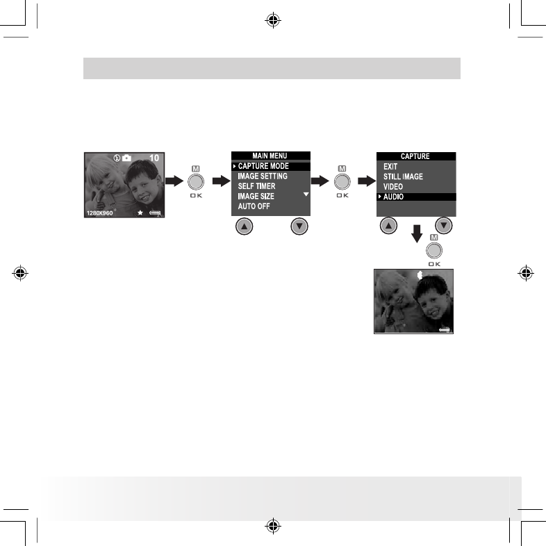 2. Régler l’appareil-photo au mode Audio par les étapes suivantes.