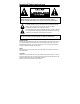 Important Safety Instructions CAUTION: TO REDUCE THE RISK OF ELECTRIC SHOCK, DO NOT REMOVE COVER (OR BACK). NO USE-SERVICEABLE PARTS INSIDE. REFER SERVICING TO QUALIFIED SERVICE PERSONNEL. The lightning flash with arrowhead symbol, within an equilateral triangle, is intended to alert the user to the presence of uninsulated “dangerous voltage” within the product’s enclosure that may be of sufficient magnitude to constitute a risk of electric to persons.
