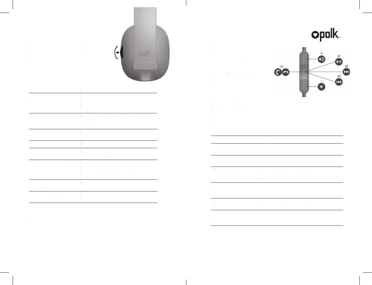 Bluetooth pairing mode Press and hold 4 seconds; the headphones