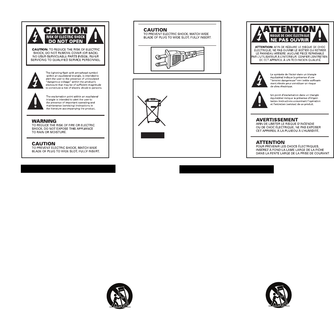 AVERTISSEMENT : Pour réduire les risques d’incendie et de choc électrique, ne pas exposer