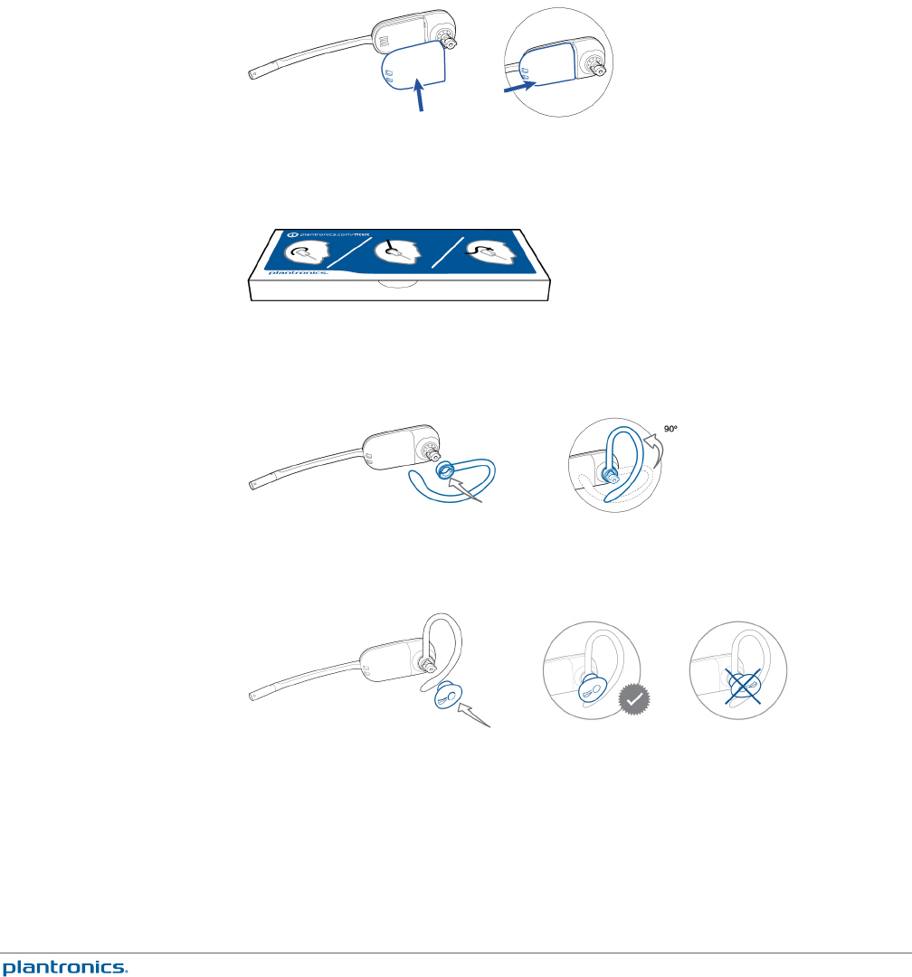 Choose the size of earloop that fits most comfortably. Align the earloop as shown and insert it