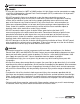 ENTRETIEN • Coupez l’alimentation électrique principale. Nettoyez le luminaire à l’aide d’un linge doux et humide. Utilisez d’un nettoyant pour vitres pour nettoyer le verre. N’utilisez pas de détergent abrasif sur le verre ou le luminaire. DÉPANNAGE AVERTISSEMENT : Avant de commencer l’installation, coupez l’alimentation électrique pour éliminer les risques de choc électrique. PROBLÈME L’ampoule ne s’allume pas. CAUSE POSSIBLE 1. L’ampoule est grillée. 2. L’alimentation est COUPÉE. 3.