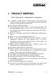 Table of Contents PRODUCT BRIEFING . . . . . . . . . . . . . . . . . . . . . . 1 -- 1 MAIN PARTS ON THE EXTERIOR . . . . . . 2 -- 1 OUTPUT AREAS . . . . . . . . . . . . . . . . . . . . . . . . . . . . . . 2 -- 1 CONTROL PANEL . . . . . . . . . . . . . . . . . . . . . . . . . . . . 2 -- 1 INPUT / OUTPUT CONNECTOR . . . . . . . . . . . . . . . . 2 -- 2 INSTALLATION -------------- MAINTENANCE NOTICES . . . . . . . . . . . . . . . . 4 -- 1 SOFEWARE COMMANDS . . . . . . . . . . . . . . . . .