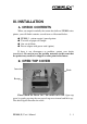 III. INSTALLATION A. CHECK CONTENTS When you unpack carefully the carton that delivers PP2000 series printer, you will find it contains several items as illustrated below. l l l l PP2000 2 - station receipt / journal printer Two rolls of paper roll sample One set of ribbon Power adaptor with power cord (option) If there is any discrepancy or problem, contact your dealer immediately. Be sure to save the packing materials in the event that the printer may need to be shipped at some point in the future. B.