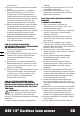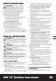 SYMBOLS Safety alert Read the operator’s manual Blade continues to rotate after the machine is switched off. Wait until all machine components have completely stopped before touching them. Do not expose to rain or water Do not burn Do not dispose of batteries. Return exhausted batteries to your local collection or recycling point. Contains Pb battery. Battery must be recycled or disposed of properly. CHARGER SAFETY RULES 1. Plug charger directly into an electrical outlet. DO NOT ABUSE THE CORD.