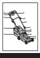 substantial footwear. c) Disengage the self-propelled mechanism or drive clutch on units so equipped before starting the motor. d) Never attempt to make a wheel height adjustment while the motor is running. e) Mow only in daylight or in good artificial light. f) Never operate the equipment on wet grass. Always be sure of your footing. Keep a firm hold on the handle and walk, never run. 12 1.3 Operation a) Do not put hands or feet near or under rotating parts.