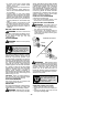 7. Once the engine starts, allow it to run 10 seconds, then move the choke lever to the RUN position. Allow the unit to run for 30 more seconds at RUN before releasing the throttle trigger. NOTE: If engine dies with the choke lever in the RUN position, move the choke lever to the HALF CHOKE position and pull the rope until engine runs, but no more than 6 pulls. Starter Handle Choke Lever STARTING A WARM ENGINE Primer Bulb 4.