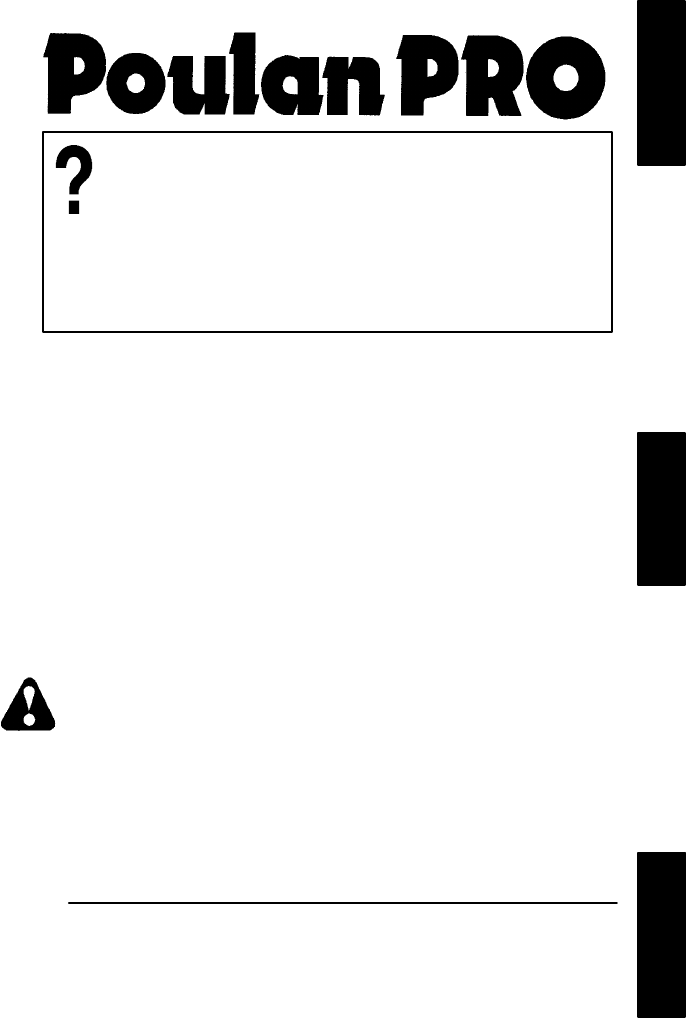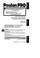 Please do not return product to retailer. Por favor, no devuelva el producto al lugar de compra. Veuillez ne pas retourner le produit au détaillant. ENGLISH R 1--800--554--6723 Register your product online at: Registre su producto en línea en: Enregistrez votre produit en ligne à l’adresse : www.poulanpro.