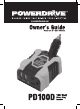 Specifications PD100D AC Power Output AC Power Voltage 115V Maximum AC Output Power 100W Maximum AC Output Surge Power 200W AC Output Frequency 58Hz - 62Hz AC Output Waveform Modified Sine Wave USB Power Output DC Output Voltage 5V DC, 2 Ports Shared 2.4 Amps Output DC Power Specification DC Input Voltage Range 11V to 15V DC Battery Drain with No AC Load ≤ 0.5A Low Battery Shutdown Point (nominal) 10.5 ± 0.3V DC High Battery Shutdown Point (nominal) 15.5 ± 0.