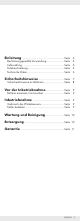 Einleitung.................................................................Seite 6 Bestimmungsgemäße Verwendung............................Seite Lieferumfang................................................................Seite Teilebeschreibung........................................................Seite Technische Daten.........................................................Seite 6 6 6 6 Sicherheitshinweise........................................Seite 7 Sicherheitshinweise zu Batterien..................