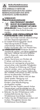 Sicherheitshinweise VOR GEBRAUCH BITTE DIE BEDIENUNGSANLEITUNG LESEN! BEDIENUNGSANLEITUNG BITTE SORGFÄLTIG AUFBEWAHREN! VORSICHT! VERLETZUNGSGEFAHR! J DAS PRODUKT GEHÖRT NICHT IN KINDERHÄNDE. DIESES PRODUKT IST KEIN SPIELZEUG! Dieses Produkt sollte von Kindern nicht ohne Aufsicht benutzt werden. LEBENS- UND UNFALLGEFAHR FÜR KLEINKINDER UND KINDER! Lassen Sie Kinder niemals unbeaufsichtigt mit dem Verpackungsmaterial. J Es besteht Erstickungsgefahr durch Verpackungsmaterial.