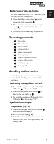 GB IE Handling batteries WARNING Risks from uses other than those intended! There is a risk of explosions and leakage! For the safe handling of batteries, take note of the following safety instructions: ► Do not throw batteries into a fire. ► Never short-circuit batteries. ► Do not attempt to recharge batteries. ► Regularly check the condition of the batteries. Leaking battery acid can cause permanent damage to the appliance. Special caution should be exercised when handling damaged or leaking batteries.