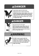complete stop, and disconnect the spark plug wire before moving the machine, emptying the bag, unclogging the inlets or outlets, filling the gas tank, or performing maintenance and repairs. STARTING THE CHIPPER SHREDDER: Make sure the hopper and funnel are empty when starting the machine. The pull start cord may stop suddenly causing the Chipper Shredder to fall over or injure your hand or arm.