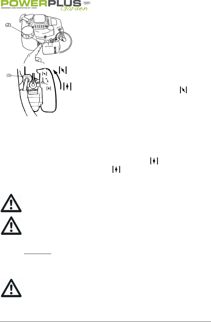 chokehendel zal automatisch naar de stand “ ” terugkeren wanneer de gashendel