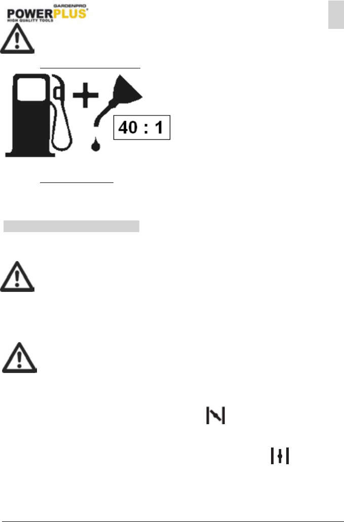 en olie moeten met een verhouding van 40:1 gemengd worden.