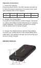 Operation Instructions 1. Check the Capacity Press the power button, the LED indicator will light up to show the power remaining in the power bank, each light indicates 25% of the capacity. Number of LEDs ON Remaining Power •••• 100% ••• 75% •• 50% • 25% 2. Charge Your Power Bank Connect the Power Bank to a Wall Charger, Computer or Laptop with USB port with a Micro/Type-C Charging Cable (supplied). The indicator will light up to show that the power bank is being charged. 3.