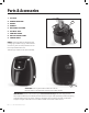 Parts & Accessories 1. FRY TRAY 2. RUBBER BUMPERS* 2 3. BASKET 4. HANDLE 1 5. MAIN UNIT HOUSING 6. AIR INLET VENT 7. CONTROL PANEL 8. HOT AIR OUTLET VENT 9. POWER CABLE NOTE: Unpack all listed contents from the packaging. Contents vary by model. Please remove any clear or blue protective film on the components before use. 3 4 *Removing bumpers is not recommended. 6 8 7 5 9 CAUTION: Unit may be hot. Be careful not to touch the Unit while in use. Keep the Unit away from other objects.