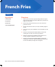 French Fries SERVES 4+ Ingredients 2 russet potatoes Directions 1. Place a pot on the stove top. Place the potatoes in the pot and cover the potatoes with water. Blanch the potatoes over high heat until tender. 2. Remove the potatoes from the pot, let cool, and cut the potatoes into fries. 3. Toss the fries with the olive oil, sea salt, and black pepper in a bowl. 4. Insert the Fry Tray into the Basket. Insert the Basket into the air fryer. 5.
