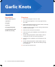 Garlic Knots SERVES 4+ Ingredients Directions 1 lb. pizza dough, refrigerated 1. Roll the pizza dough out until ½ in. thick. ½ cup olive oil 2. Slice the dough lengthwise to form strips approximately ¾ in. wide. 3. Roll the dough strips between your palm and the countertop. Make a knot with each dough strip. 4. Combine the olive oil, garlic, sea salt, parsley, and Parmesan cheese in a bowl and mix. 5. Roll the knots in the mixture in the bowl. 6. Insert the Fry Tray into the Basket.