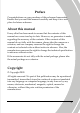Preface Congratulations on your purchase of this advanced camcorder. Ensure that you read this manual carefully and keep it in a safe place for future reference. About this manual Every effort has been made to ensure that the contents of this manual are correct and up to date. However, no guarantee is made regarding the accuracy of the contents.
