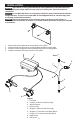 SPECIFICATIONS 1. 2. 3. 4. 5. 6. 7. DC Input Voltage Controller Operation Current Receiver Operation Current Receiver Unobstructed Range Alarm Volume at 11.8 in. (30 cm) Away Frequency Working Temperature 10-16V ≤ 75mA ≤ 75mA ≥ 49 ft (15 m) ≥ 50dB 433.92 ± 0.2MHz 14°F to 113°F (-10°C to 45°C) FCC INFORMATION Changes or modifications to this equipment not expressly approved by the party responsible for compliance could void the user’s authority to operate the equipment.