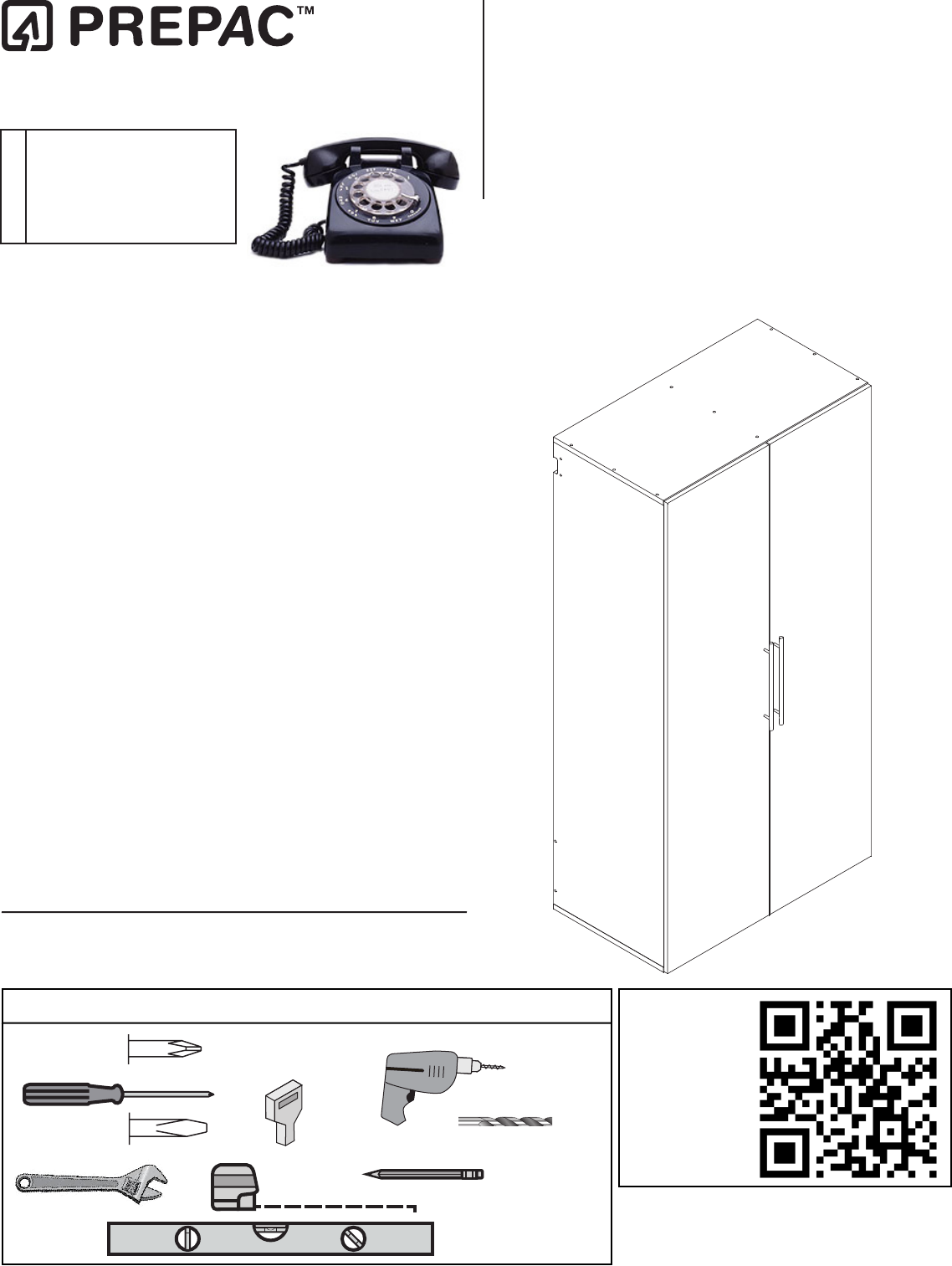 Installing Hang Ups Garage Cabinets 2 people required Read through all installation steps before beginning ONLINE HELP Pour suspendre les armoire au mur, vous aurez besoin de 2 personnes Lisez bien toutes les étapes de cette installation avant d’entamer la tâche. L’AIDE EN LIGNE To see a how-to installation video, click on “How to Install Prepac’s Garage Storage Collection” on the Assembly page in the Support section of our website: www.prepacmfg.