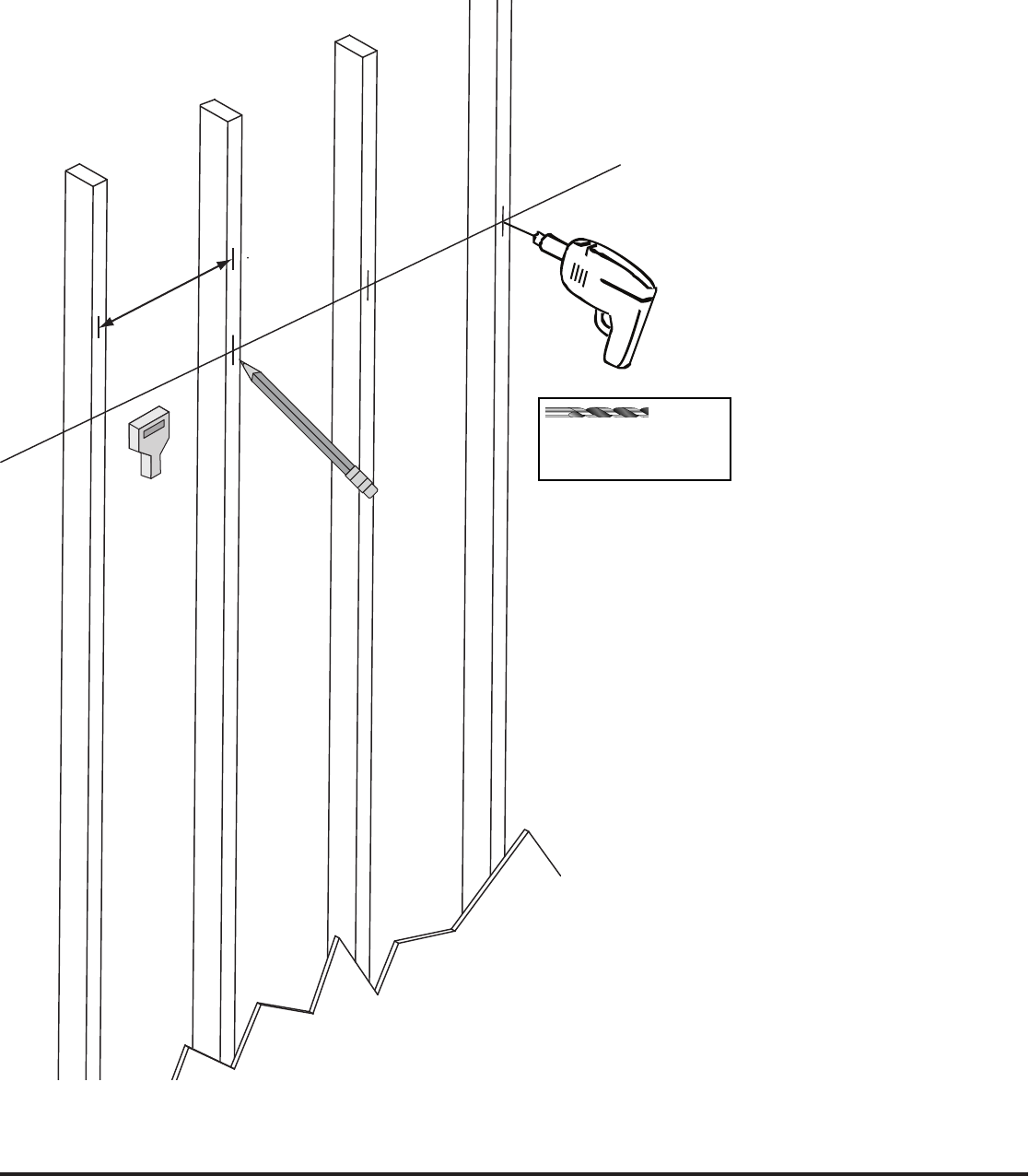 stud along the line. Studs are typically 16 inches apart center to