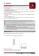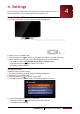 4. Settings You can set up your DVR before record videos and capture photos in burst. To finish this operation, you need to connect your DVR to the TV. 4 Connect to your TV 1. Connect your DVR to the TV by using the supplied HDMI cable. 2. Switch your TV to HDMI mode. 3. Slide the switcher to [ ] to power on your DVR. Your DVR is in preview mode now. 4. While connecting to your TV, use the following buttons to control playback: -- Press [M] to switch among MOVIE, PHOTO, REC and SETUP modes.