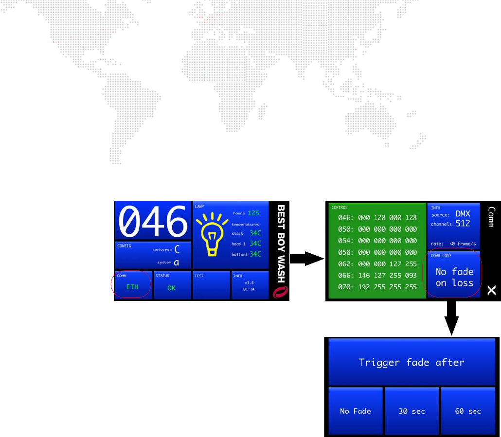 The Communication screen includes a "Comm Loss" setting. This setting will configure how long to wait before the
