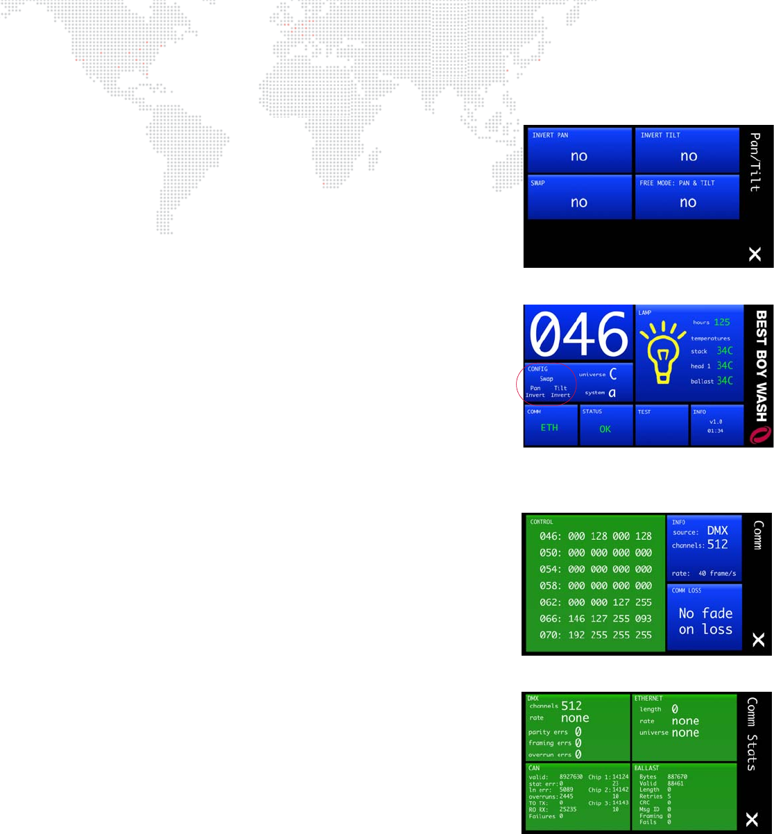 Art-Net). Press INFO to bring up the Comm Stats screen.