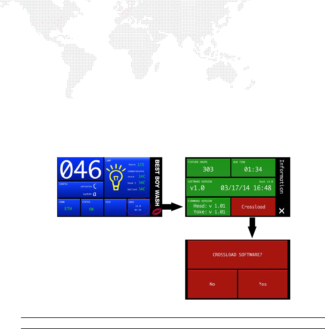 To initiate the software crossload, press Crossload Software at the Information screen. At confirmation screen, press
