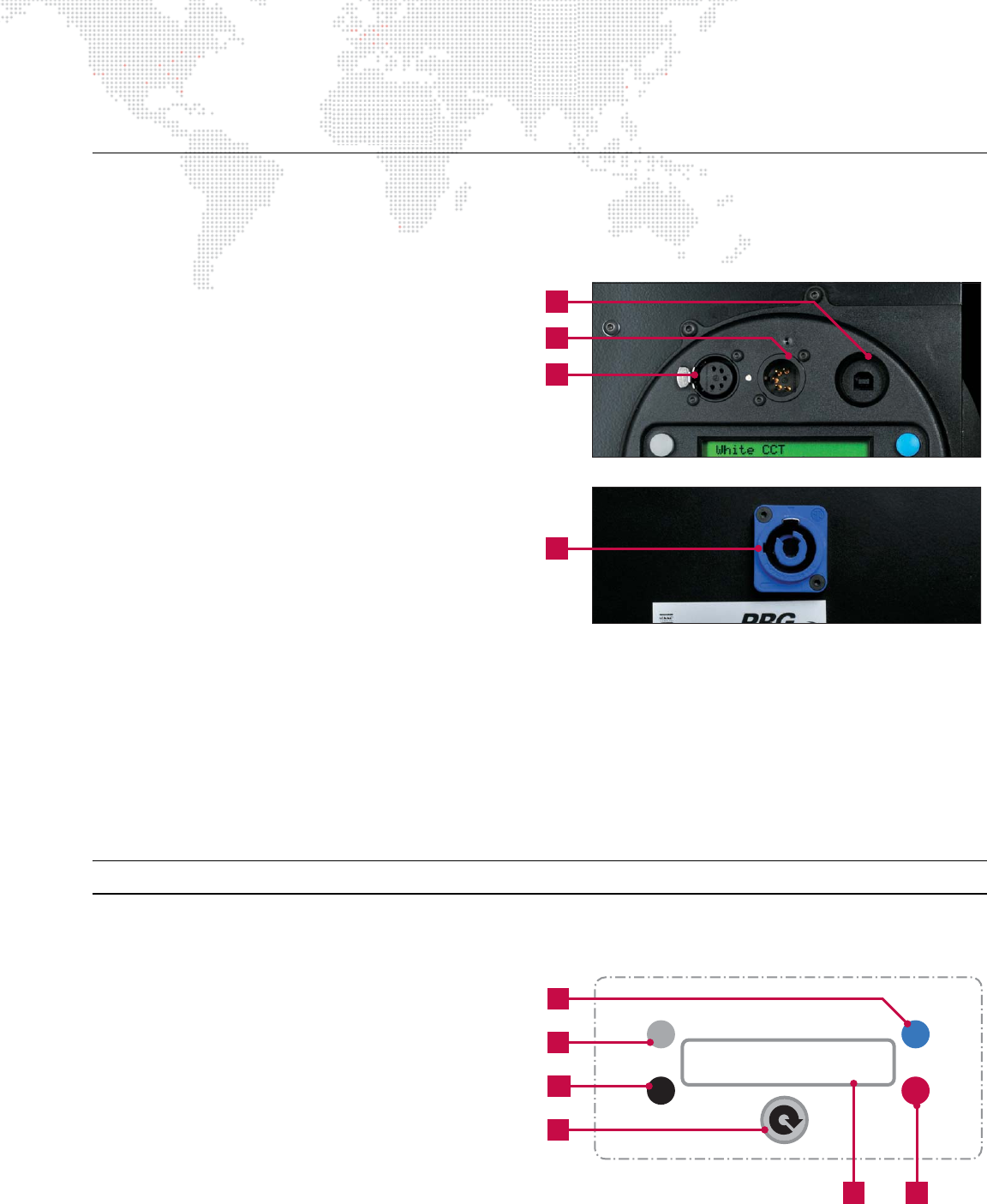 OHM uses industry standard 5-Pin XLR male and female connectors to receive DMX signals and output DMX signals.