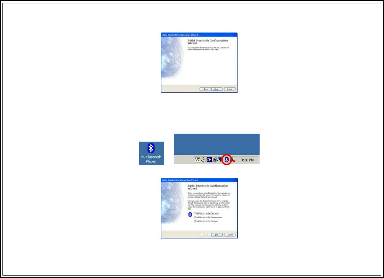 1. The Initial Bluetooth Configuration Wizard launches. Uncheck the options you do not require and click Next to continue.