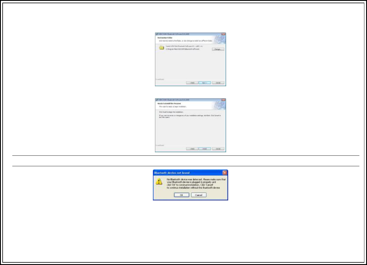Note: If the “Bluetooth device not found” message appears, plug the USB Bluetooth adapter into a USB port of your computer and click OK.
