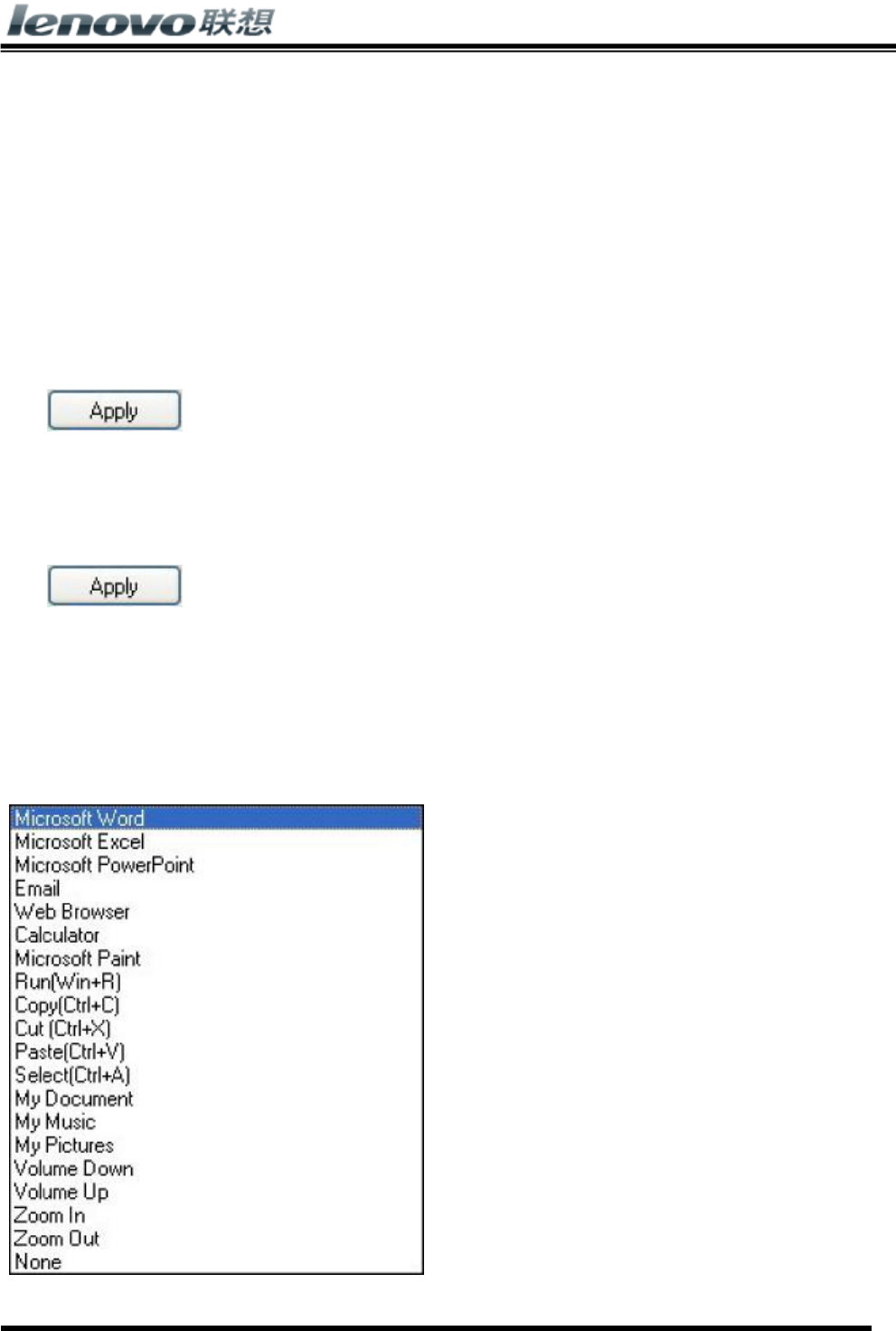 A drop down menu will appear. Select an application from the following list: