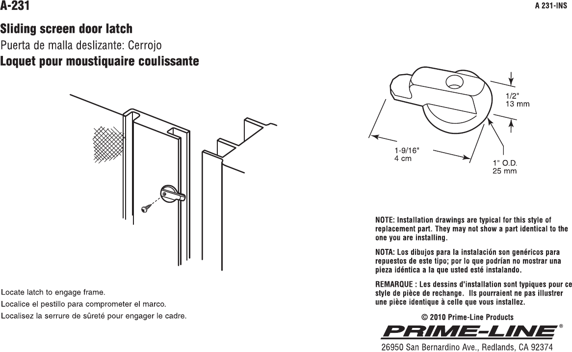 1-9/16" Stone Plastic Swinging Screen Door Latch