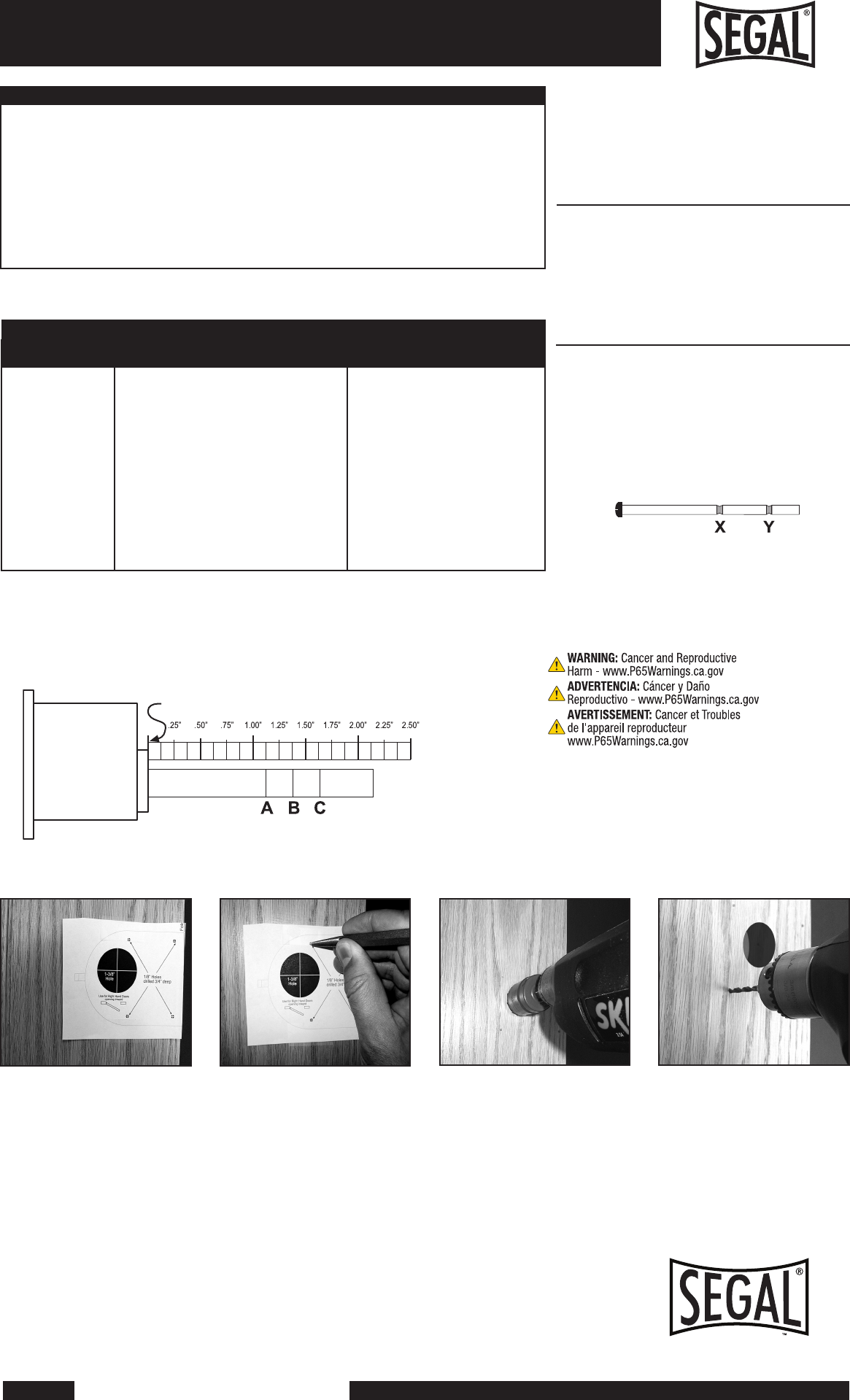 Drill the 1-3/8" diameter hole through the door. Take care to