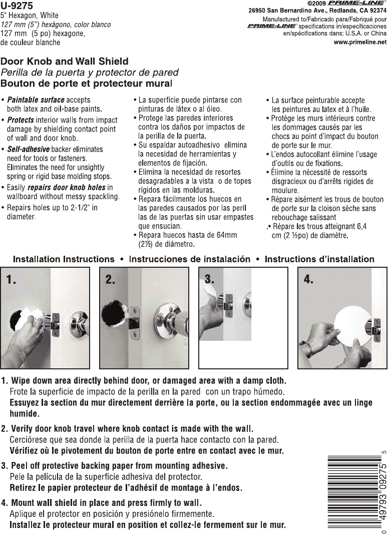5 in. Hexagon Self-Adhesive White Vinyl Wall Protector
